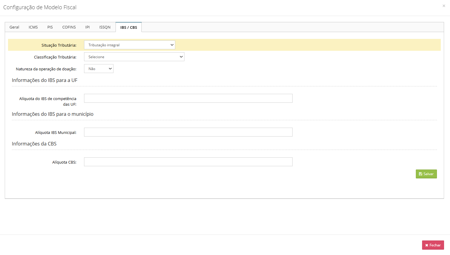 Modelo Fiscal: Entre na aba "Configuração de Modelo Fiscal".